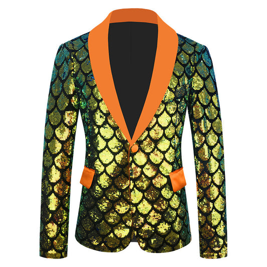 Men's Velvet Colorful Turning Piece Scale Sequined Costume
