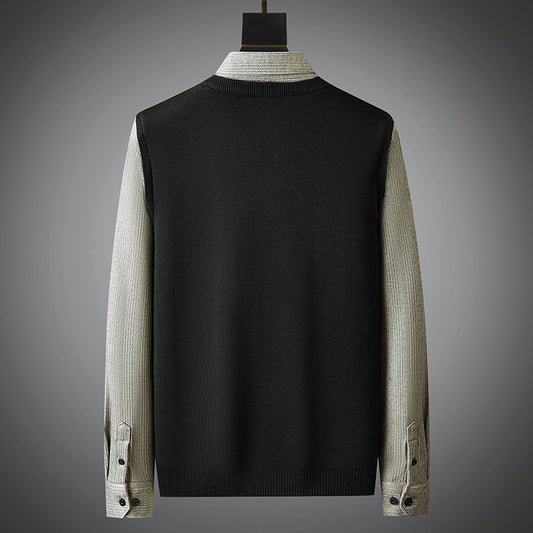 Winter Brushed Woolen Thickened Fake Two Pieces Sweaters Men
