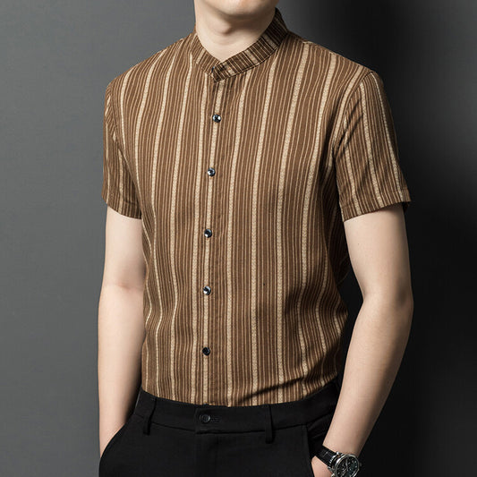 Cotton Stand Collar Chinese Style Short Sleeve Shirt