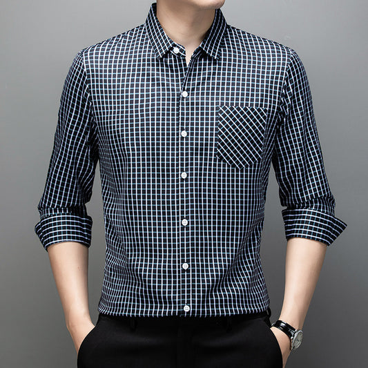 Long Sleeve Fine Plaid Shirt For Men Spring And Autumn