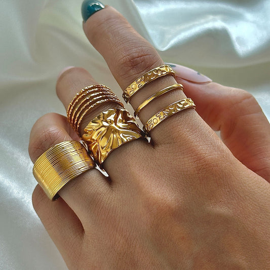Stainless Steel Vacuum Plating 18K Gold Multi-layer Multi-point Curved Personality Ring