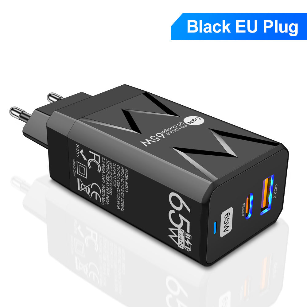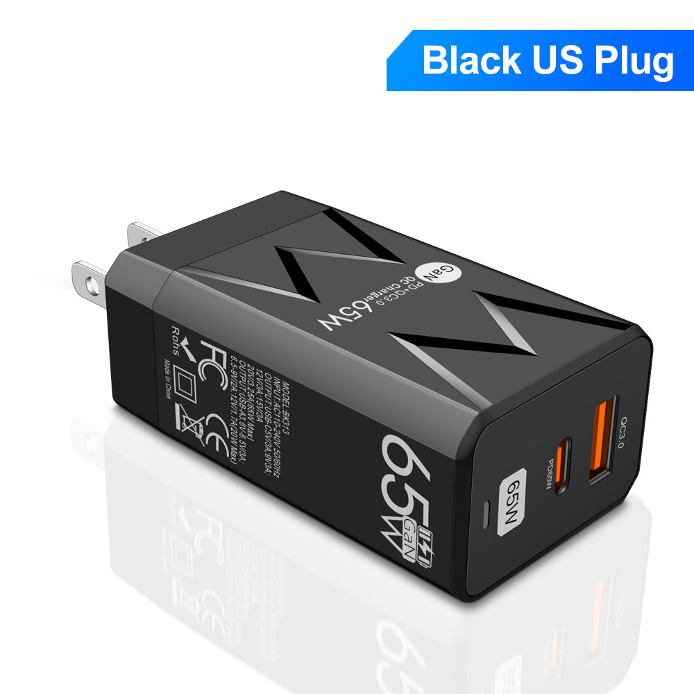 QC3.0 charger, American, European, and British standard GaN PD65W fast charging head