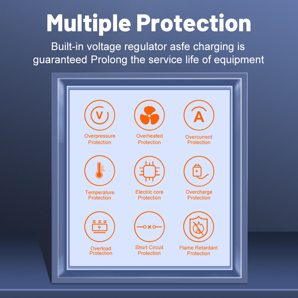[Product Name]: Standard 65W-AC fast charging charger; [Product Specifications]: US standard (flat feet), EU standard (round feet) [Product Color]: Black, White [Product Material]: Pure PC flame retardant material [Bare machine size]: European standard: 32 * 63 * 100mm American standard: 32 * 63 * 78.8mm [Input Parameters]: AC100-240V 50/60Hz 0.5A; [Output Parameters]: USB QC3.0 Orange USB 5V=3A 9V=2A 12V=1.5A [Output Parameters]: USB green/ USB1+USB2+USB3+USB4+USB5 5V/3.1A |