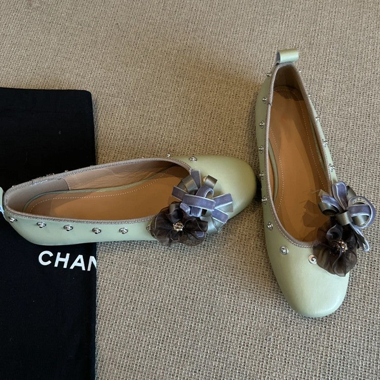 Diy Flower Rivet Mary Jane Shoes Shallow Mouth Flat Bottom